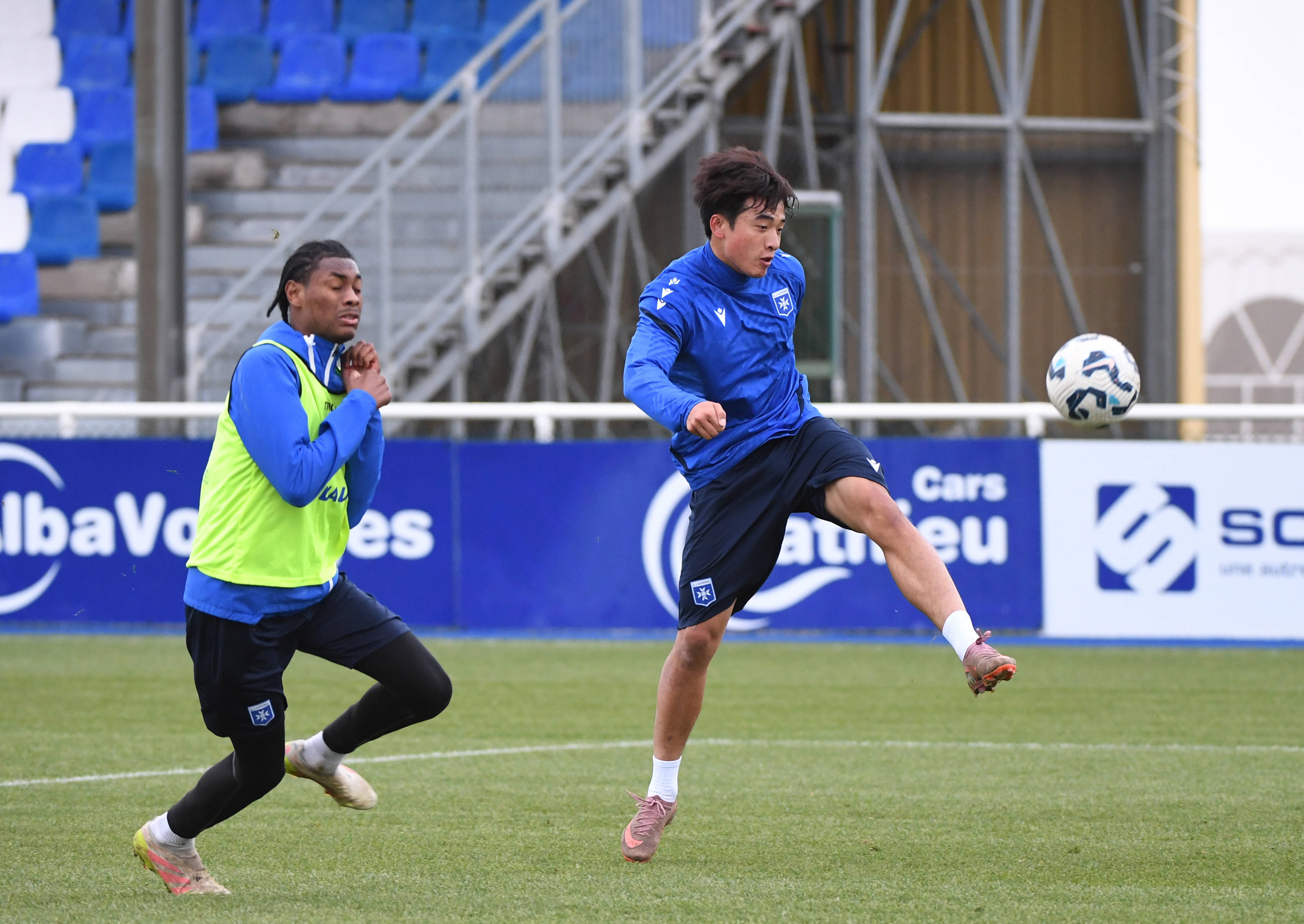 1月14日,在法国欧塞尔,即将加盟法甲欧塞尔俱乐部的中国球员魏祥鑫(右)参加欧塞尔预备队训练。新华社记者 贺灿铃 摄此外,欧塞尔俱乐部青训梯队里还有数名中国籍球员。饶勒斯说,这些球员在度过最初的适应期后,在能力、语言等各方面取得了很大进步。“虽然法国与中国的文化、环境有差别,但俱乐部的教练、队友都会帮助他们。我们有一名中国籍的青训教练,他可以充当球员与俱乐部的桥梁,向这些球员分享在法国踢球、生活的经历。”
