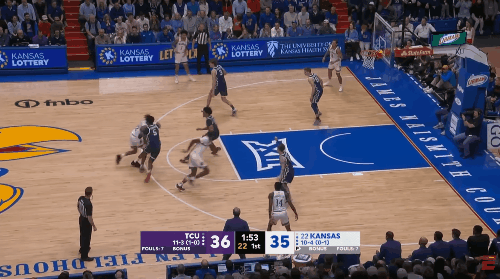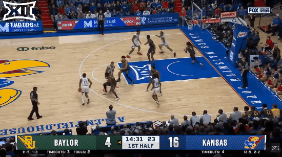 与本赛季早期所看到的录像相比,这位18岁的年轻人在控球和投篮以及传球决策方面已经展现出了显著的进步。他的运球有时仍然会显得过高,尤其是在尝试变向的时候,但以及可以从容地控制好自己的弹跳和节奏了。每当他获得一对一单打的机会,尤其是在攻防转换中,迪班萨便如同捡回了高中那漂亮的身体控制能力般杀入篮下。他很容易在一对一突破时制造杀伤,让对手忌惮他的突破威胁。而他也不完全依赖于自身的身体素质来用速度直接过人,能够使用犹豫步,上半身假动作配合自身急停急走的能力甩开防守者。他的左路技术很不错,且天生就是裁判的宠儿,能够靠着这些技巧频繁走上罚球线。从更宏观的角度看,他在大学级别的对抗中,已经能够轻松创造出得分的机会,这让人对其在更高级别的联赛里更上一层楼而带来信心。