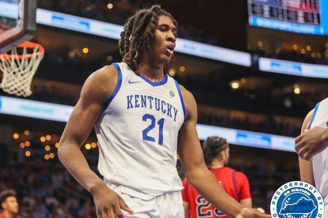 在该四场比赛里,数据不显似乎是杰登·昆坦斯最小的问题。各大榜单里,他依旧是备受宠爱的乐透球员,球探对其无限的可能性和优秀的运动能力青睐有加。但在实战里,他对肯塔基的贡献肉眼可见的不如大一球员马拉奇·莫雷诺。人们希望杰登·昆坦斯所展现的投射潜力,自主进攻和篮板能够在下一级别完成兑现,但实际上这位运动能力不错的强壮内线在终结方面极其糟糕,除去扣篮外没有稳定得分的能力。他具备一定的脚步和投射,但这些都只是空有姿势,并没有效率和进球作为支撑。而防守端,他的护框似乎是和运动能力息息相关,比起实打实的影响力,球探更愿意加上一句潜力,希望想象中的昆坦斯可以在更高级别的联赛里闪亮登场,而不是看其客观的表现。