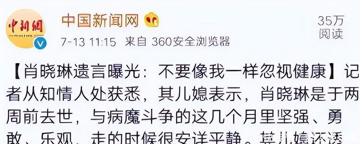 这短短的26个字没有丝毫的煽情,也未对命运进行抱怨,只有一份深刻的警示。肖晓琳用这几句话凝练了自己的一生和所有的教训,传达给世人。她未在遗书中提及荣誉、成就,反倒以自己的离去提醒世人:身体健康始终居于首位。无论过去曾多么辉煌、取得多大成功,只要忽视了健康,最终的结局便是全部丧失。