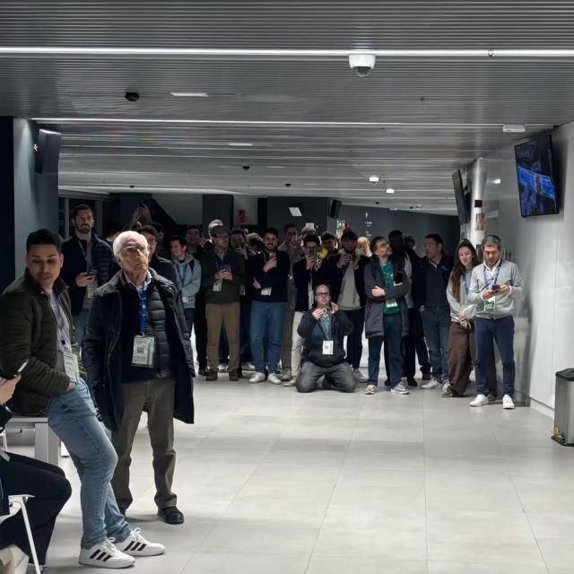当赛前笔者走进伯纳乌媒体区时,几乎所有记者都聚在电梯口附近等待穆里尼奥的出现,消息显示,皇马本场为穆帅安排了媒体区的包厢观赛,与之前国家德比同样被禁赛的巴萨主帅弗利克待遇相同。因此现场记者们都没有去往自己的席位,而是将手机镜头都对准了通往包厢的通道。不久后皇马媒体部门的管理人员出现,喝令所有记者回到自己的席位上去,虽然仍有部分不死心的记者继续蹲守,但直到比赛开场,也没有等到穆帅现身伯纳乌媒体区。